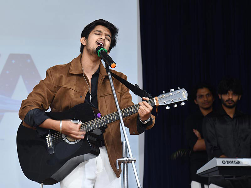 Chief Guest Mr. Vishwanath Haveri, noted music composer and lyricist, set the stage ablaze with a mesmerizing live performance, exuding charisma and artistic flair. He was joined by the dynamic student performers Mr. Abhay (Intern) and Mr. Nitish, further elevating the energy of the evening.